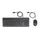 HP 150 muis en toetsenbord met kabel. Toetsenbord formaat: Volledige grootte (100%), Connectiviteitstechnologie: Bedraad, Aansluiting: USB, Toetsenbord toetsschakelaar: Membraan keyswitch, Toetsenbordindeling: AZERTY. Kleur van het product: Zwart. Inclusief muis
