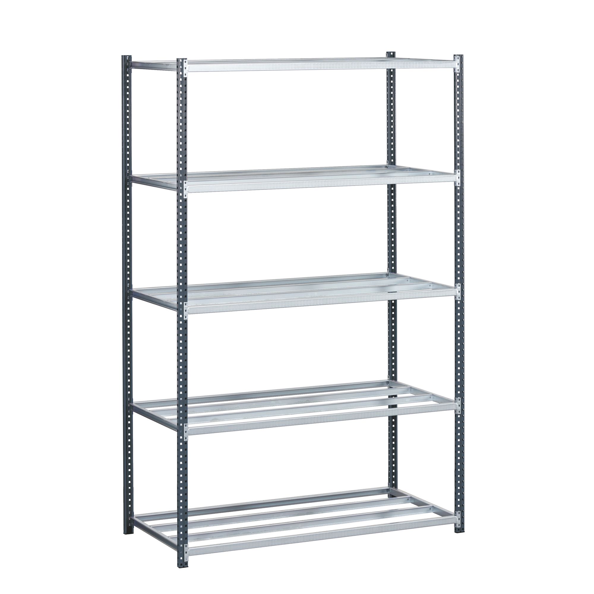 Gebruikt als basiselement of als aanbouwelement is het een efficiënte oplossing voor het vereenvoudigen van de opslag: zijn metalen buisvormige planken (=liggers) : 5 in totaal zijn in hoogte verstelbaar per 2,5 cm. Dankzij de kunststof einddoppen beschermt dit model de vloer tegen het gewicht van de stelling.