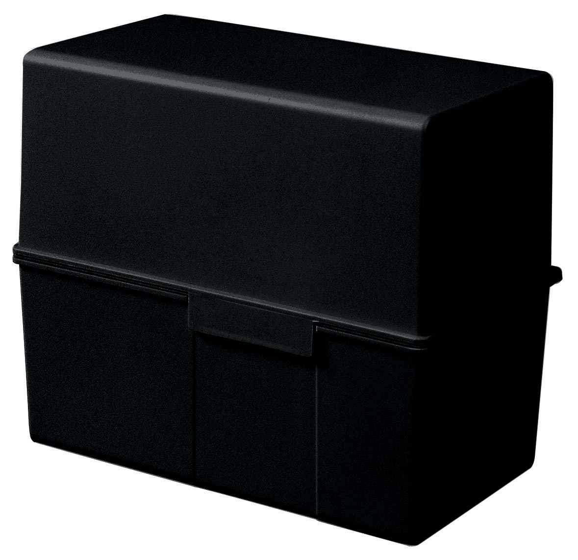 ProductinformatieVoor 400 fiches, niet gevuld, met clipsluiting enstalen scharnieren, het deksel kantelt helemaal naar achteren en dient dus als opbergsteun,afmetingen: (B)165 x (D)96 x (H)128 mm.