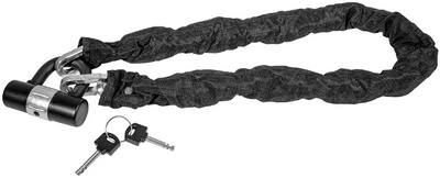 ProductinformatieSterke stalen ketting, eenvoudig beveiligingsmechanisme,inclusief 2 sleutels, kleur: zwart.