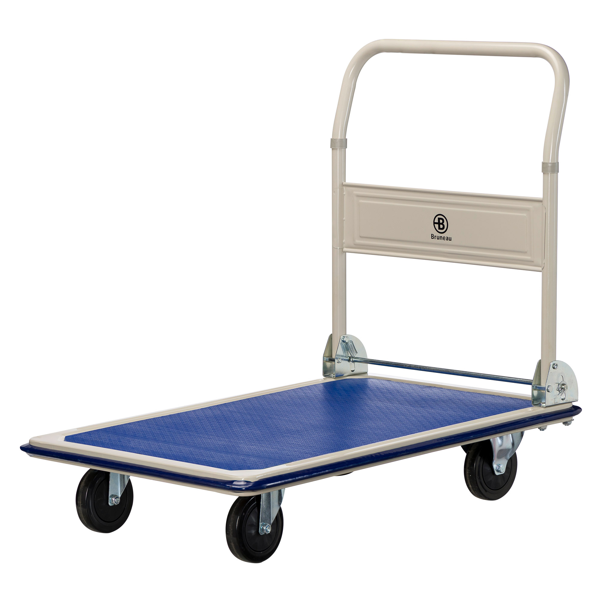 ProductinformatieOm zware lasten te vervoeren zonder vermoeid te raken, kies je voor de rollende kar van Bruneau.Inderdaad, zijn platform van staalplaat 90,5 x 60,5 cm is uitstekend vervaardigd om tot maximaal 300 kg te dragen. Bovendien biedt zijn antislipcoating extra veiligheid.Handig, de opklapbare rugleuning van stalen buizen zodat de kar zo min mogelijk ruimte inneemt wanneer hij opgeborgen is.4 wielen Ø 12,4 cm (2 vaste wielen om aan de voor- of achterkant te plaatsen) met rubberen bekleding voor zorgeloos rijden.Afmetingen totaal: H 84 x L 60,5 x D 90,5 cm. Gewicht 14 kg.