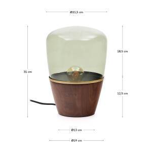 Lampada da tavolo Silex in impiallacciatura di noce e vetro verde