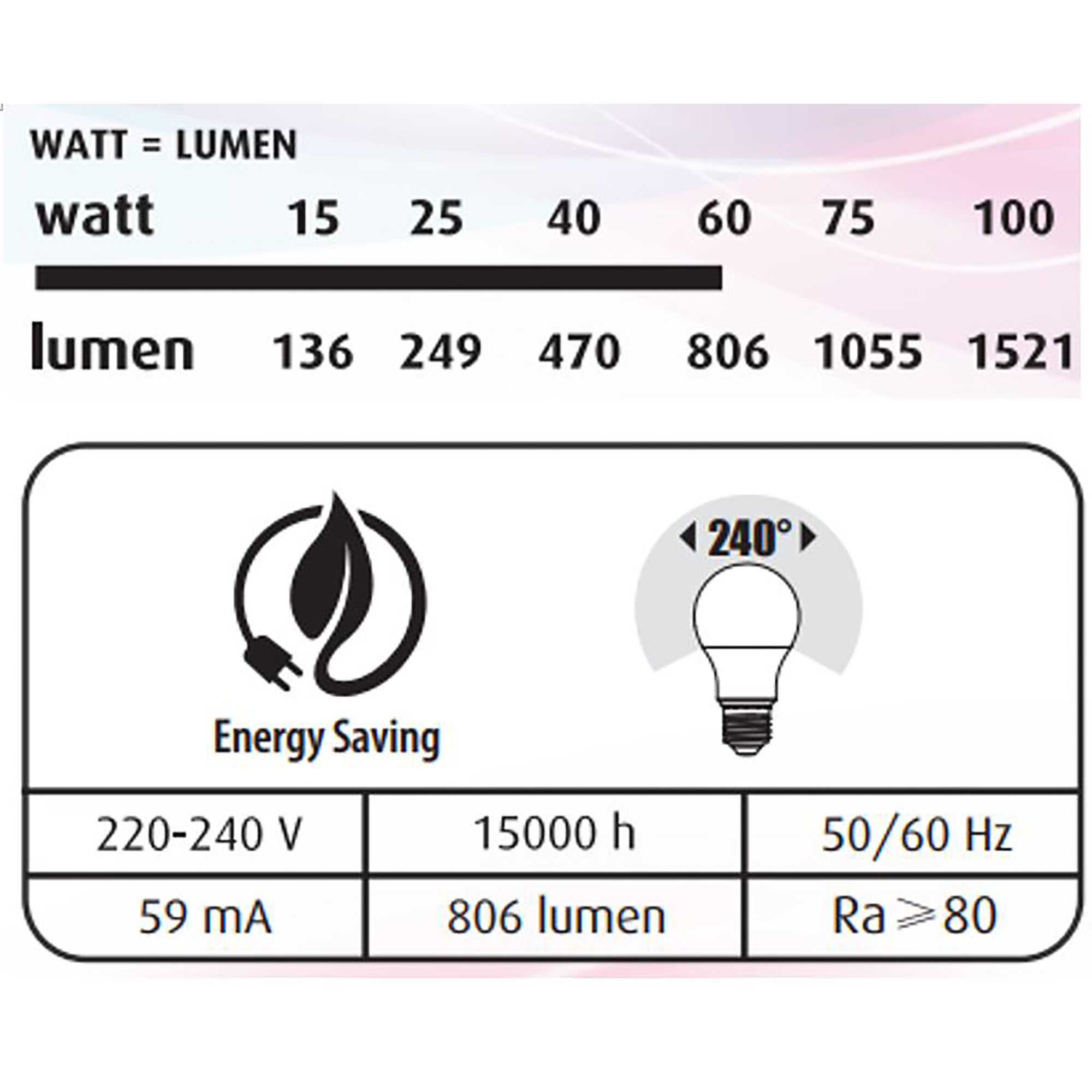 • 8,6 W verbruikt voor 60 W geretourneerd (806 lumen)