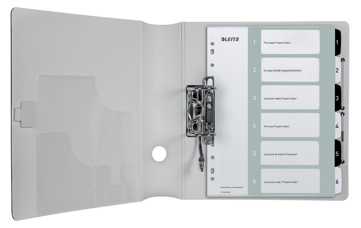 ProductinformatiePC printbare index via www.leitz.com/easyprint. Sterk en duurzaam met heavy duty PP van 300 micron. A4+ formaat (30,5 x 24,5 cm) zorgt voor snelle toegang zelfs bij gebruik van showtassen. 11-gaatsperforatie.