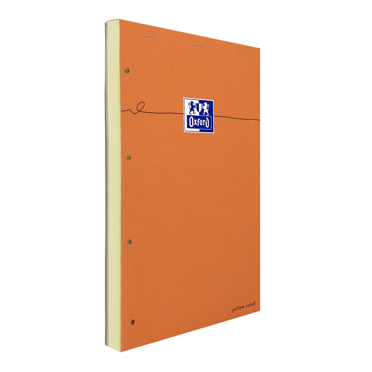 De Oxford geperforeerde notitieblok in A4+ formaat, 8 mm gelinieerd geel en met 80 vellen gelijnde pagina's, met een gelamineerde oranje kaft, is een onmisbaar hulpmiddel voor alle professionals die hun organisatie willen optimaliseren.