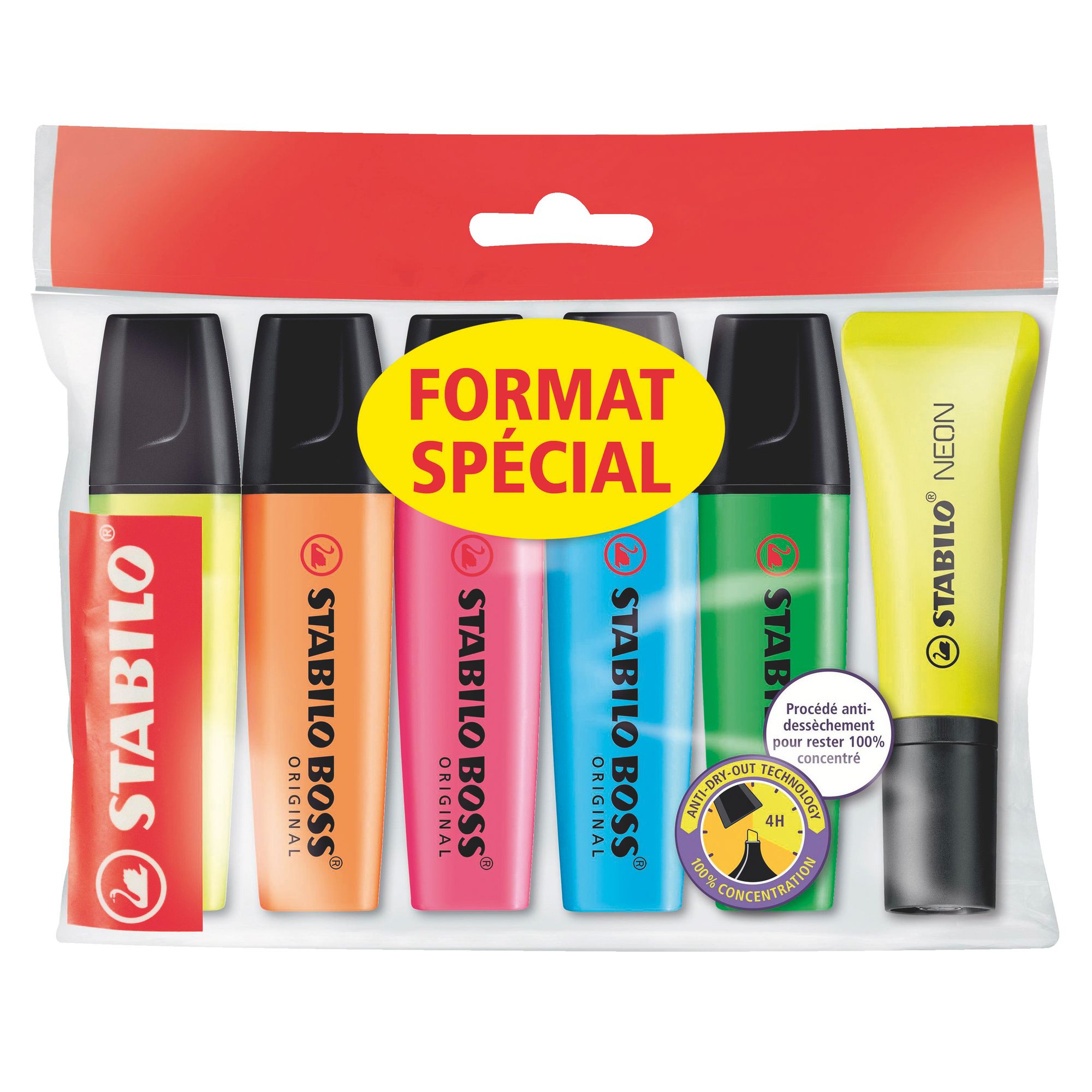 Zet de belangrijkste woorden of zinnen in de verf met deze markeerstiften van Stabilo Boss. Met de schuine punt kan u een lijn maken van 2 tot 5 mm. Deze stift gebruikt inkt op basis van water en kan gedurende 4 zonder dop liggen zonder uit te drogen. Bovendien is de inkt geschikt voor alle soorten papier en bestand tegen zonlicht.