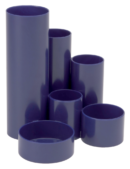 ProductinformatieVoor stiften en andere schrijfwaren Van sterk kunststof 6 cilinders van verschillende doorsnee en hoogtes Max. hoogte 14,8cm.