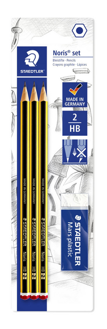 Noris 120 hoog kwalitatief potlood om te schrijven, te tekenen en te schetsen Ideaal voor op school en op kantoor Extreem breukvast dankzij de speciale stiftformule en de verlijmde potloodstift Hout afkomstig van gecertificeerde, verantwoordelijk beheerde bossen Potlood Made from Upcycled Wood Verantwoord gebruik van grondstoffen Houtcomponent van PEFC gecertificeerde wouden Zacht, anti-slip oppervlak en hoge breukvastheid.
