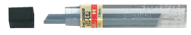 Super hi-polymer stiften 0.5 mm. Hardheid: H. Materiaal is een mengsel van kunsthars, grafiet en carbon. Zeer dichte structuur zorgt voor een diepzwarte lijn en exacte lijndikte. Soepel en breukvast. Lengte 60 mm. Koker met 12 stuks. Dit product bestaat voor 98% uit gerecycled materiaal.