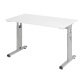 Werkhoogte tussen 65 en 85 cm. Verstelbaar in de hoogte met stop inkepingen1 cm, afregeling tot ± 5 mm. Werkbladdikte: 2,5cm. Zilverkeurig onderstel (gelijkwaardig aan RAL 9006). Horizontale kabelgoot inbegrepen. Verticale kabeldoorgang mogelijk via onderstel, verborgen achter afneembaar paneel. Werkblad beschikbaar in 2 kleuren: donkere eik, wit. Afmetingen werkblad: B 120 x D 67,2 cm.