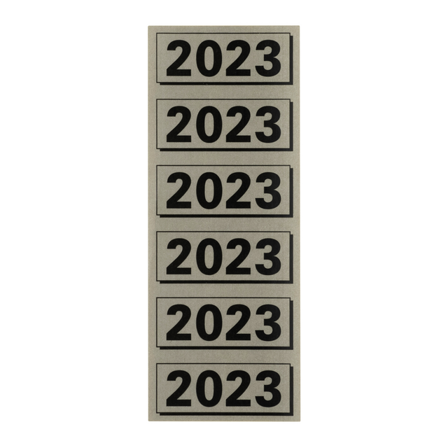 Productinformatie* Elba jaaretiketten. * Grijs met zwarte cijfers. * Gekleurde zelfklevende etiketten. * Oplosmiddelvrij. * Opdruk: 2023. * Pak van 20 vellen