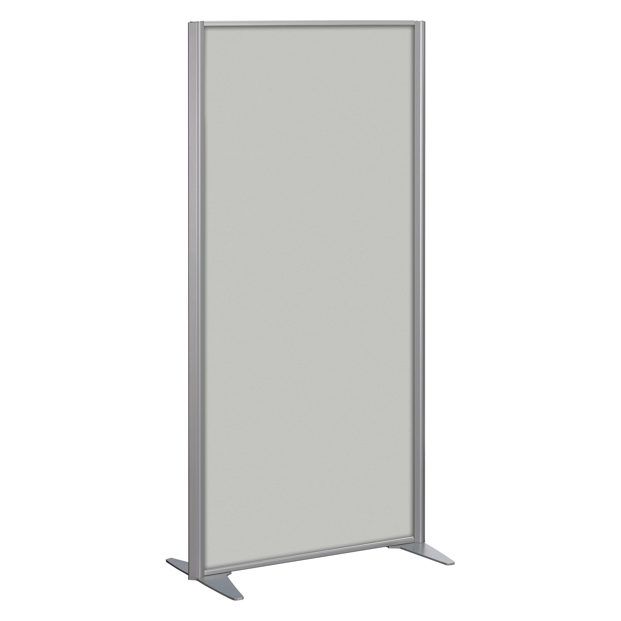 Verstelbare krikken om oneffenheden in de grond te compenseren. Met een zilvergrijs dragend frame. De scheidingswand heeft een klassieke stijl die geschikt is voor een professionele omgeving.