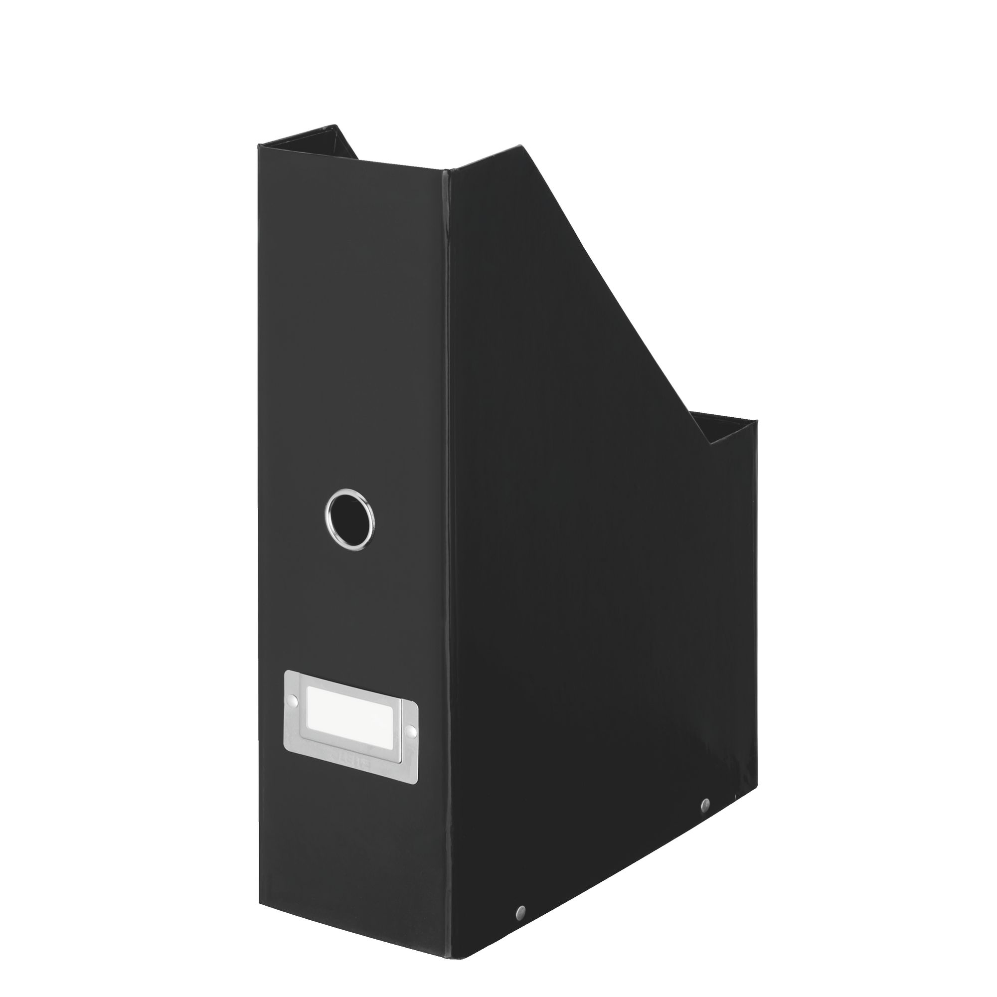 Deze handige en esthetische tijdschriftenhouder is ideaal om uw documenten in op te bergen. Noteer de inhoud dankzij de 2 etikettenhouders om snel uw dossiers terug te kunnen vinden. Deze houder is gemaakt uit sterk karton voor dagelijks gebruik. Beschikt over een metalen grijpoog om gemakkelijk te kunnen worden verplaatst. Afmetingen: H 33 x B 25,3 cm met een rug van 10,3 cm om heel wat dossiers, catalogi en folders in op te bergen.