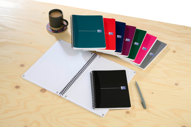 Grijze geplastificeerde dubbelspiraal binding om het notebook geheel plat open te leggen voor een maximaal comfort