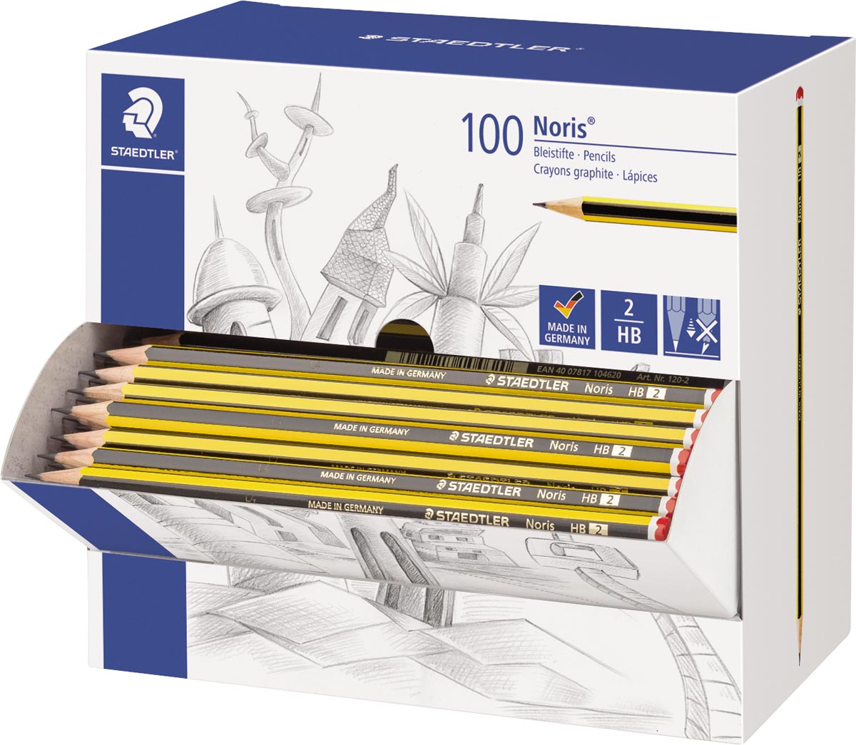 ProductinformatieNoris hoog kwalitatief potlood om te schrijven, te tekenen en te schetsen. Ideaal voor op school en op kantoor. Zeskantig potlood van zeer goede kwaliteit. Bijzonder breukvast door hardverlijmde potloodstift. HB. Display van 100 stuks.