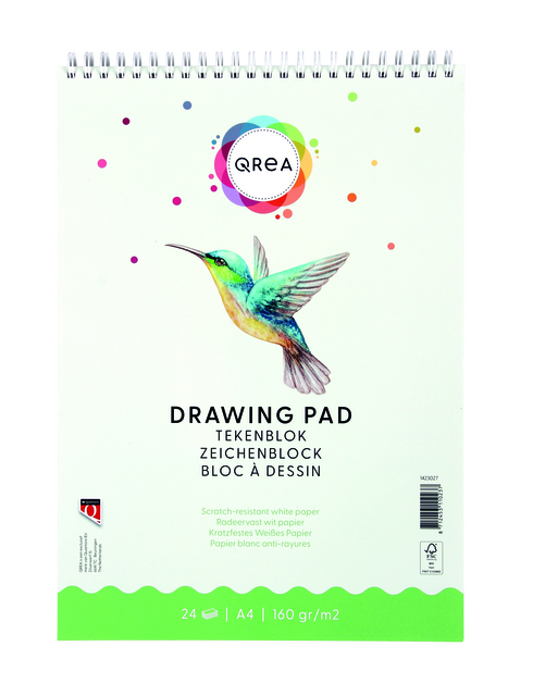 * Of je nu een beginner bent of een professionele kunstenaar, dit tekenblok van Qrea is geschikt voor iedereen! * Met dit tekenblok van 160 grams papier maak je de mooiste tekeningen of schetsen. * Dit schetsblok heeft een dubbele spiraal. * Het bevat radeervast papier. * Het harde karton aan de onderkant zorgt voor optimaal gebruiksgemak. * Afmeting: A4 formaat. * Blok à 24 vellen papier. * Diverse formaten beschikbaar. * Geproduceerd in Nederland.