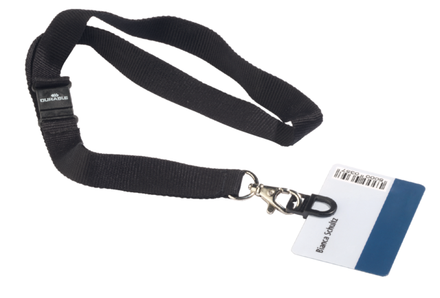 CARD FIX met textielkoord 20mm Met veiligheidssluiting die open springt bij een te hoge trekbelasting Bezoekerspassen e.d. zijn nu gemakkelijk te scannen Met kaarthouder voor het snel bevestigen van bedrijfs-, beveiligings- en bezoekerspassen en visitekaartjes Lengte 44cm.