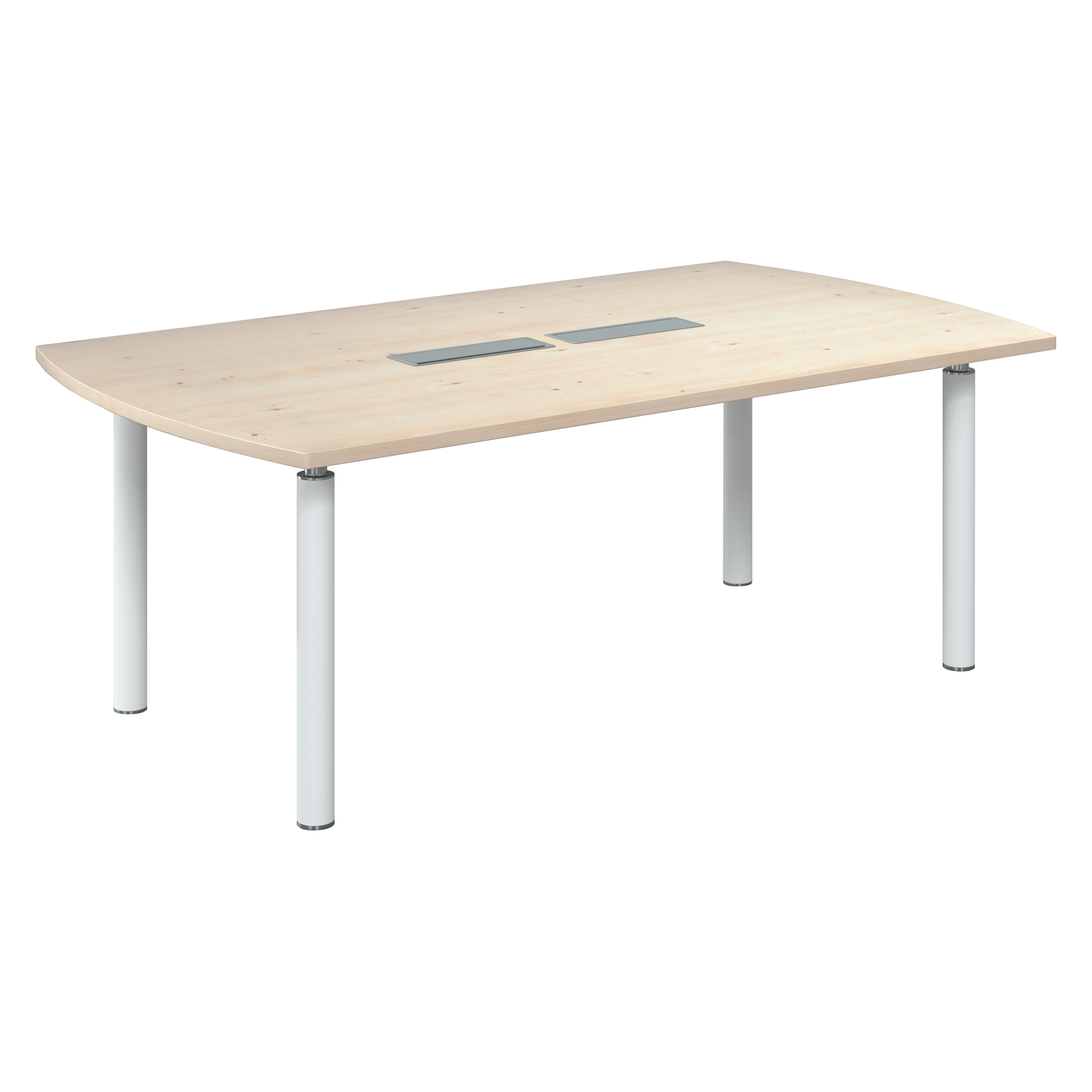 Kies voor uw verschillende vergaderingen voor deze tonvormige tafel van Belem, goed voor ieders comfort. Aan deze tafel kunnen er tot 8 personen zitten. Bovenblad gemaakt van gemelamineerde spaanplaat met een hoge weerstand, een niet-reflecterende bekleding en afgeronde hoeken, voorzien van schokbestendige randen, voor nog meer robuustheid. Deze tafel is voorzien van een dubbele top access voor de doorgang van kabels (B 80 cm) en een kabelgoot (B 90 cm) onderaan het werkblad, zodat u uw informaticamateriaal goed kunt installeren. De stabiliteit van deze stafel wordt verzekerd door de 4 buisvormige, metalen poten met een diameter van 8 cm en een afwerking in wit of aluminium. Montage is optioneel. Keuze bovenblad: perelaar, wangé of lichte eik. PEFC-certificaat. Dikte werkblad: 30 mm. Afmetingen: H 74 x B 200 x D 115 cm.