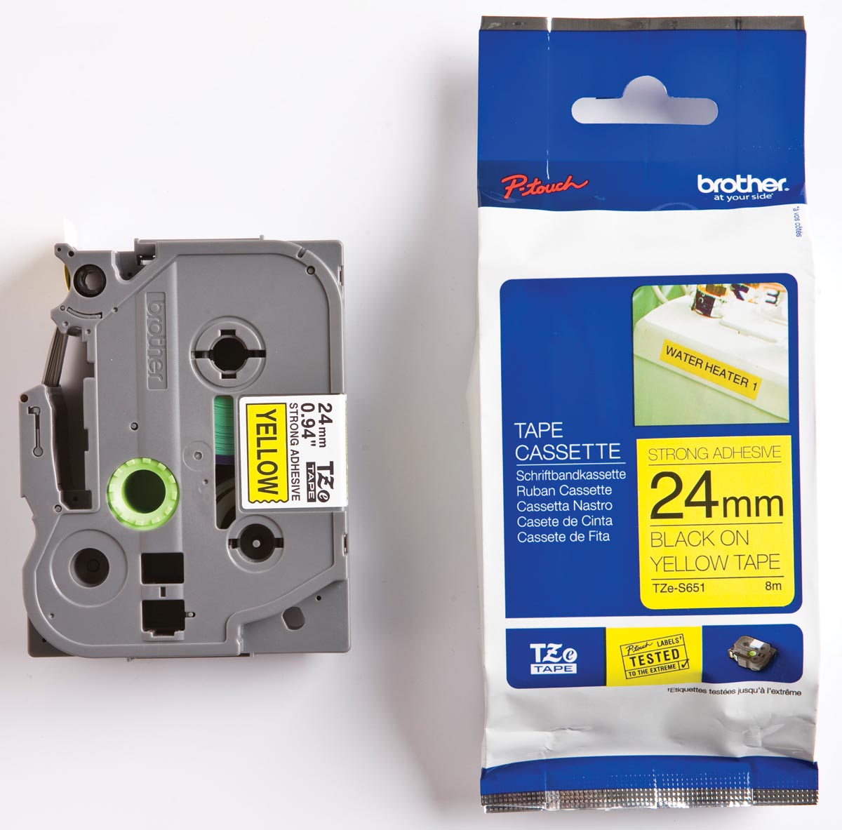 ProductinformatieLintbreedte: 24 mm, lintengte: 8 m,zwart schrift op gele tape,voor P-touch 350/540/540C/550/2400/2400E/2420PC/2450/2450DX/(TZ-S651 / TZe-S651)2460/2480/2500PC/3600/9200PC/9200DX/9400/9500PC/9600/2700VP9700PC/9800PCND600VP.