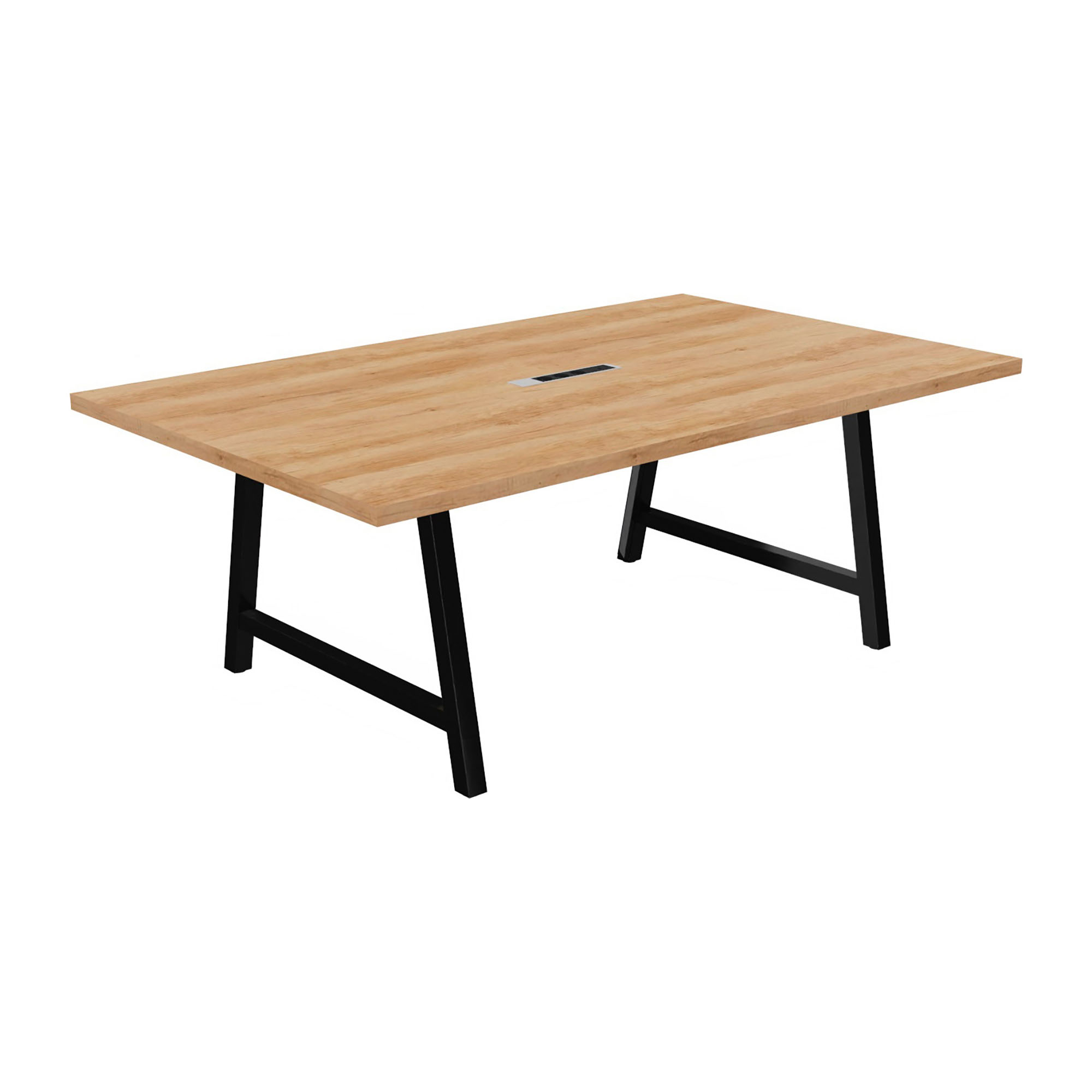 Vergadertafel Synergy L 200 x D 120 x H 74 cm met verzonken elektrische unit, zwarte metalen voet.