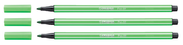 De Pen 68 is verkrijgbaar in heel veel prachtige heldere kleuren, waaronder ook neon- en pasteltinten. Deze diversiteit zorgt voor non-stop creativiteit - daarom past de STABILO Pen 68 perfect bij de huidige trends als handlettering, journaling of sketchnotes. Ook fans van mandalakunst en iedereen die liever tekent of schildert zijn enthousiast over de veelzijdigheid van deze hoogwaardige viltstift. De robuuste punt zorgt voor een constante kleurafgifte en is perfect om gemakkelijk krachtige lijnen mee te zetten of grotere vlakken in te vullen. De punt kan tot 24 uur zonder dop zonder uit te drogen - perfect om lekker door te kunnen werken aan je creatieve project. De kleuren kunnen worden gemengd met water voor prachtige aquareleffecten. De Pen 68 is vanaf heden duurzamer dan ooit: vanaf heden is de dop en penbehuizing gemaakt van 96% bio-gebaseerd kunststof volgens massabalans benadering.* Geproduceerd in Duitsland * Dop en penbehuizing gemaakt van 96% bio-gebaseerd kunststof volgens massabalans benadering* Inkt op waterbasis kan worden gemengd met water voor prachtige aquareleffecten* Robuuste M punt ca. 1 mm* Kan tot 24 uur zonder dop zonder uit te drogen* De dop past achterop de viltstift* Verkrijgbaar in 65 kleuren. Alle kleuren los verkrijgbaar. * De premium viltstift STABILO Pen 68 in de kleur: loofgroen (43)
